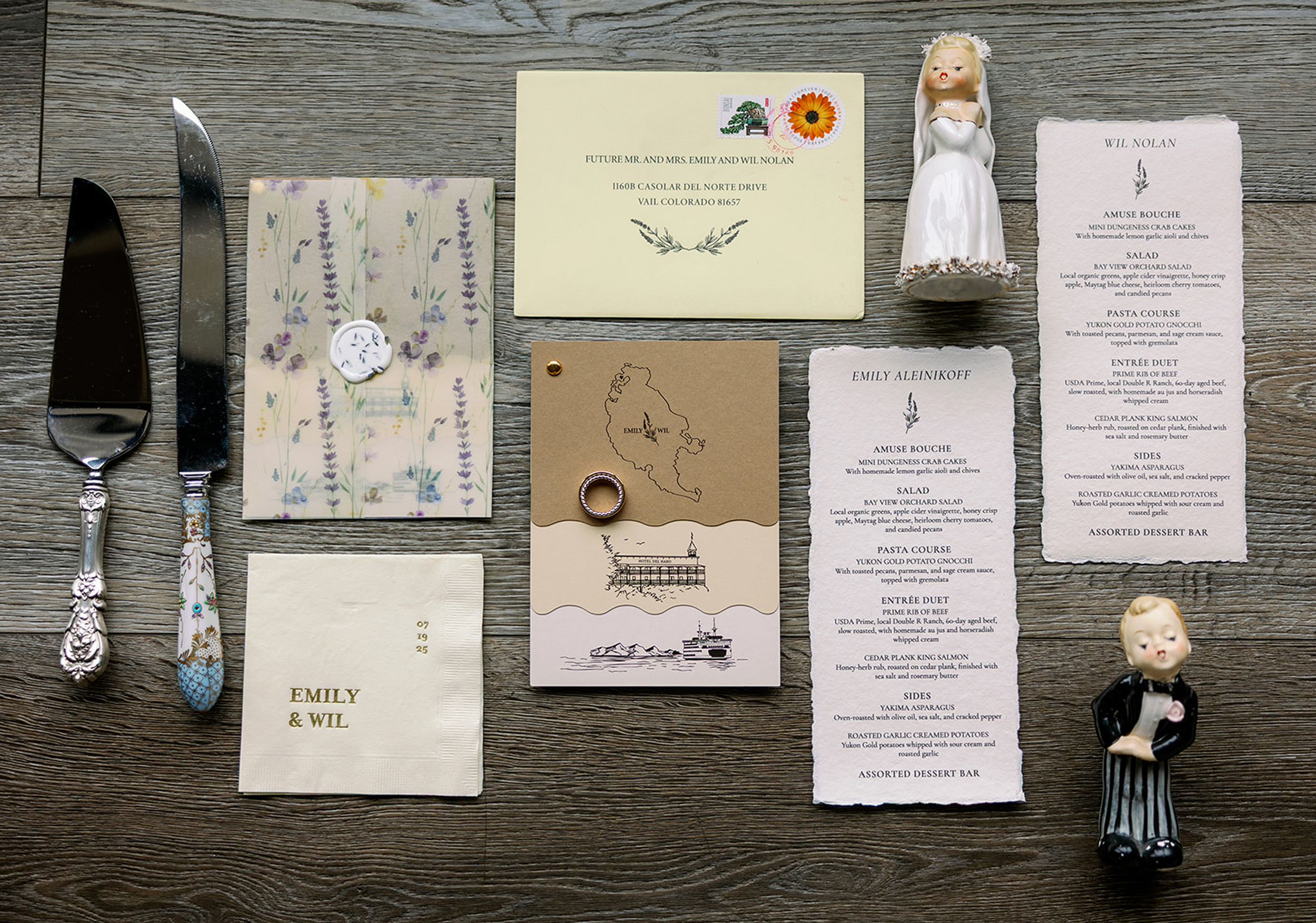 A beautiful summer evening in the San Juan Islands celebrating Emily and Wil’s love story. Surrounded by soft coastal light and touches of yellow and lavender, these two glowed at their favorite place — beautiful Roche Harbor.